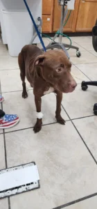 I explained, in general terms, that yes—the pup just needed some sedation to remove staples and sutures around his face, and that our team was working with her on the financial piece.